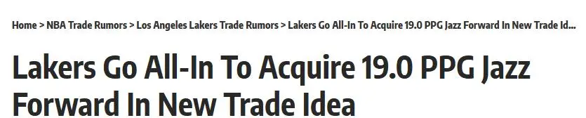湖人6换1交易方案,19+6前锋辅佐东契奇詹姆斯,筹码令爵士难拒绝
